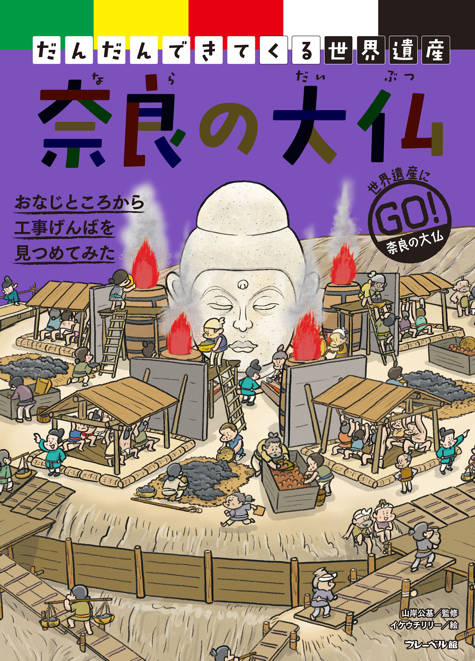 *古い時代の建造物で工法なども諸説があり、現在も研究・調査が引き続き行われているものもあるので、工事風景の描写は資料をもとにした想像図です。