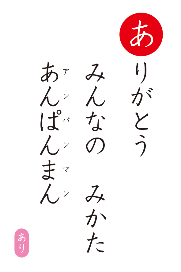 - かるた遊び、ことば遊び、ひらがなの書き順、そしてキャラクターの名前も覚えられるアンパンマンのかるた。遊べて学べて楽しみ方いっぱい! かわいい缶ケース入りで収納にも便利です。絵札・読み札各46枚入り。