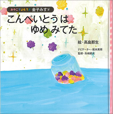 - これから言葉を体得する子どもたちに、美しい日本語に出会ってほしい……。子どもと共に、若い親たち、祖父母、まわりの大人が一緒にみすゞの詩を楽しめる、新感覚の金子みすゞ絵本シリーズです。高畠那生が絵を、ナビゲーターをミュージシャンの坂本美雨が担当しました。各詩には、金子みすゞ記念館館長の矢崎節夫によるひとこと解説もついています。
