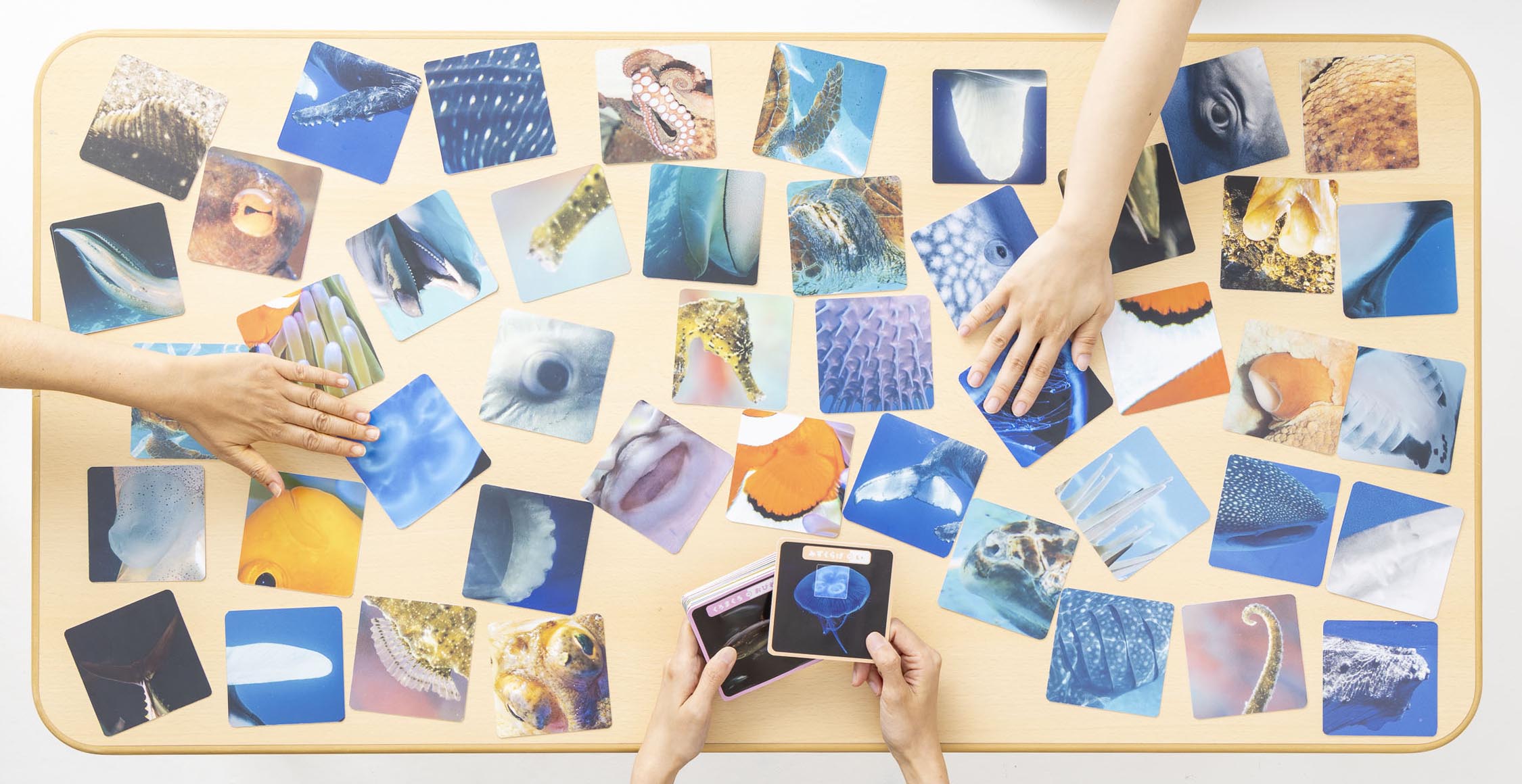 - 海の生き物のからだの一部「だけ」をじっくり観察して、読み札に合う「だけ」を探す、新しいかるたです。
