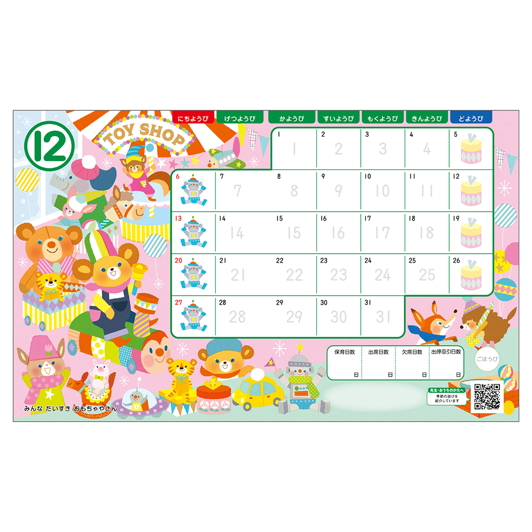 - ■セット内容: テーマ:お店屋さん 4月:うさぎの はなやさん、5月:こぶたの サンドウィッチやさん、6月:かえるの かさやさん、7月:りすの ジューススタンド、8月:とらの たこやきやたい、9月:ぞうの クレープやさん、10月:ライオンの ほんやさん、11月:さるの しゃしんスタジオ、12月:みんなだいすき おもちゃやさん、1月:たぬきの かいてんずしやさん、2月:ふゆの あったかグッズやさん、3月:はるの レストラン
