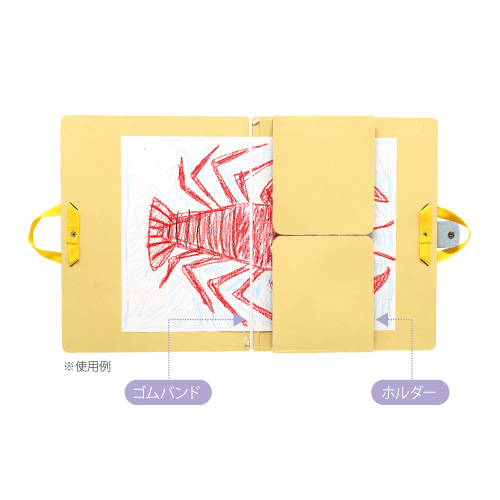作品に穴をあけずに保存できるゴム留めタイプ。A2サイズまで収納可 角丸