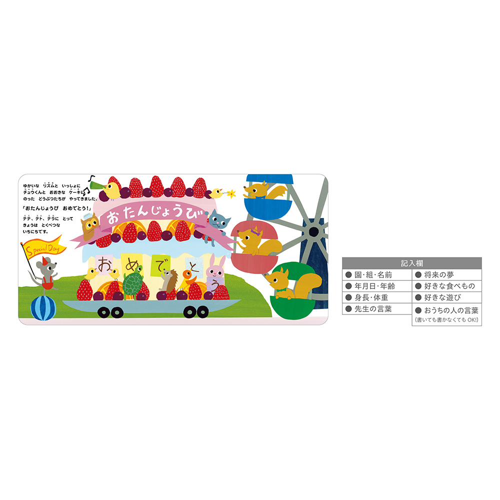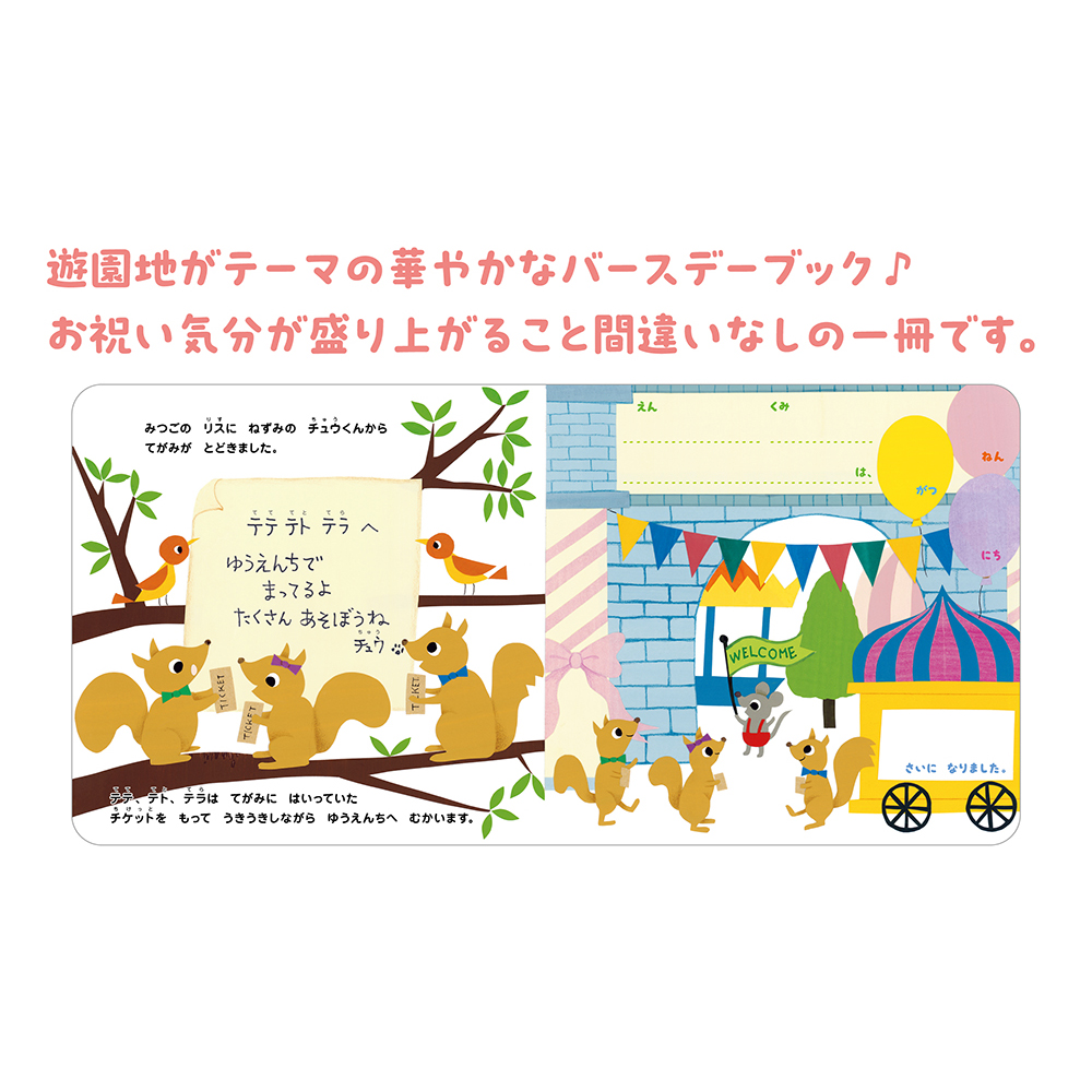 遊園地がテーマの華やかなバースデーブック♪お祝い気分が盛り上がること間違いなしの一冊です。