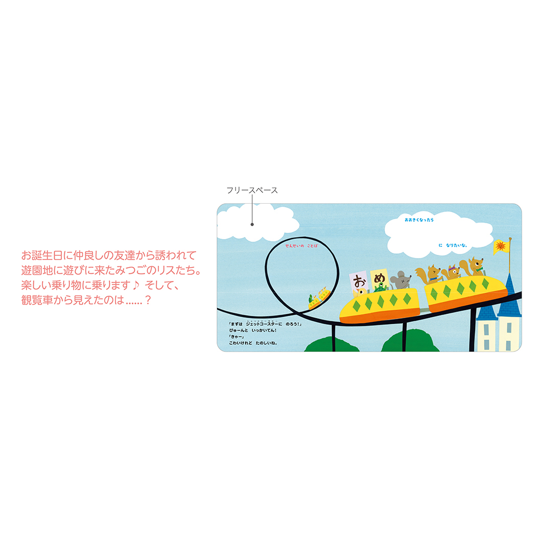 - お誕生日に仲良しの友達から誘われて遊園地に遊びに来たみつごのリスたち。楽しい乗り物に乗ります♪そして、観覧車から見えたものは……?
