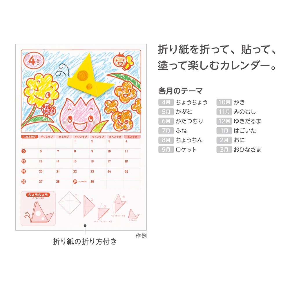 - 折り紙を折って、貼って、塗って楽しむカレンダー。