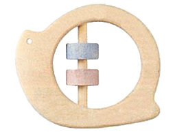 職人によって一つひとつていねいに作られ、日本由来のやさしい色で着色した日本産木製ラトルです。カラカラ温かみのある音を鳴らします。