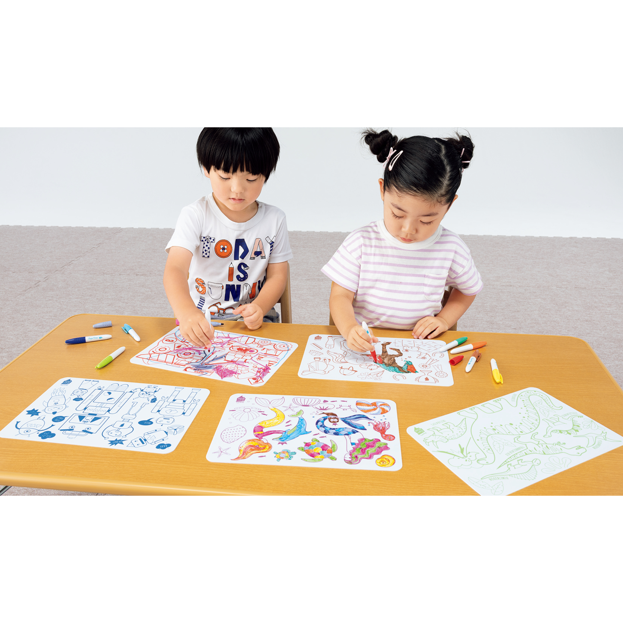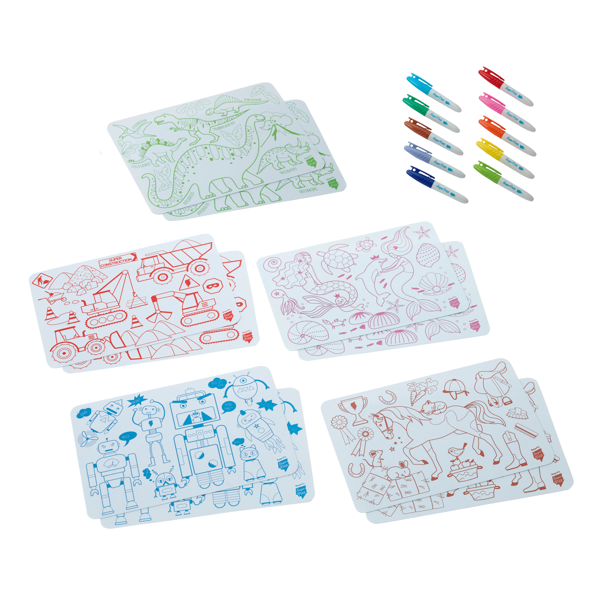 繰り返し何度でも楽しめるフランスデザインのかわいいぬりえマットです。