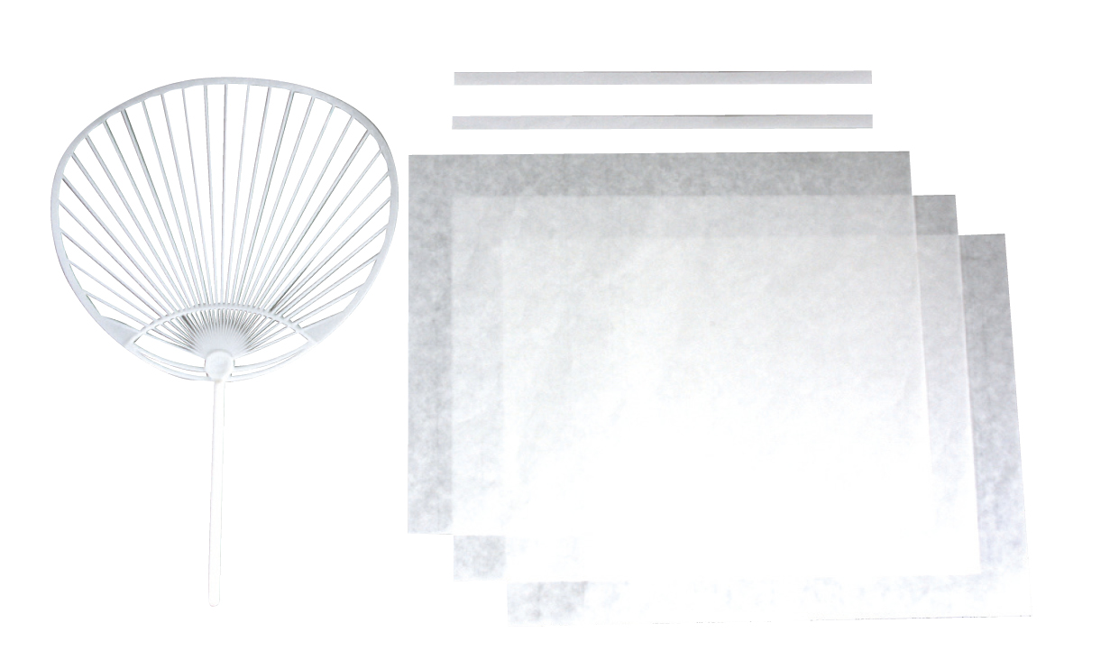 ■セット内容: うちわ芯1 特殊加工和紙(36.4×25.7cm)3 うちわへり用和紙シール2