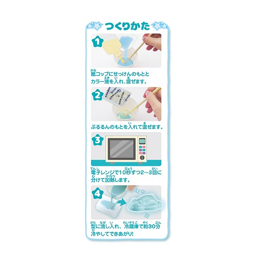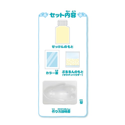 - ■セット内容: せっけんのもと カラー液 ぷるるんのもと 型 作り方説明書