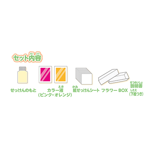 - ■セット内容: せっけんのもと カラー液 紙せっけんシート フラワーBOX 作り方説明書