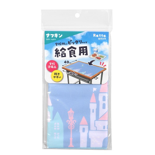 この給食ナフキンは学校机に合わせて作られており、机からはみ出すことなくぴったりサイズ!