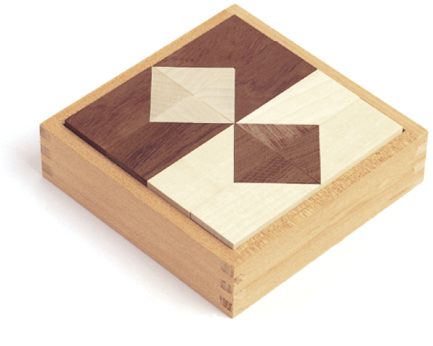 箱の深い面で平面のパターン作り、浅い面で立体構成と、活動に応じた使い分けが可能です。パターン集付きです。
