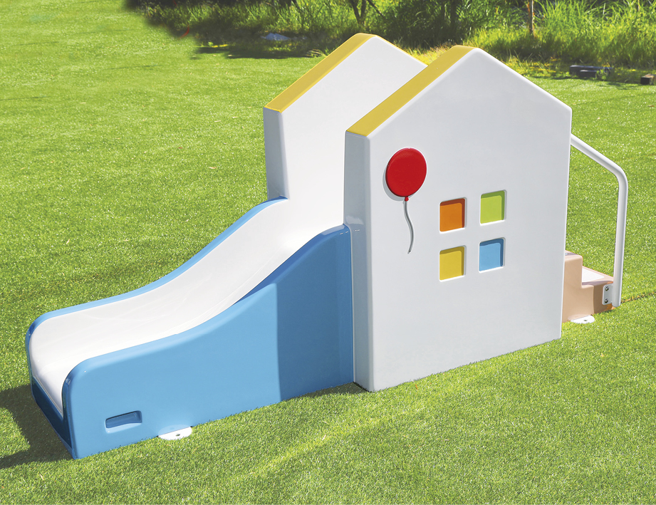 据置式 小スペースに対応できるよう開発された低年齢児向け園庭遊具です。 コンパクトでも、充実した遊びスペースができます。 スライダーは連結できません。 移動時用の持ち手付き。 ペグ固定