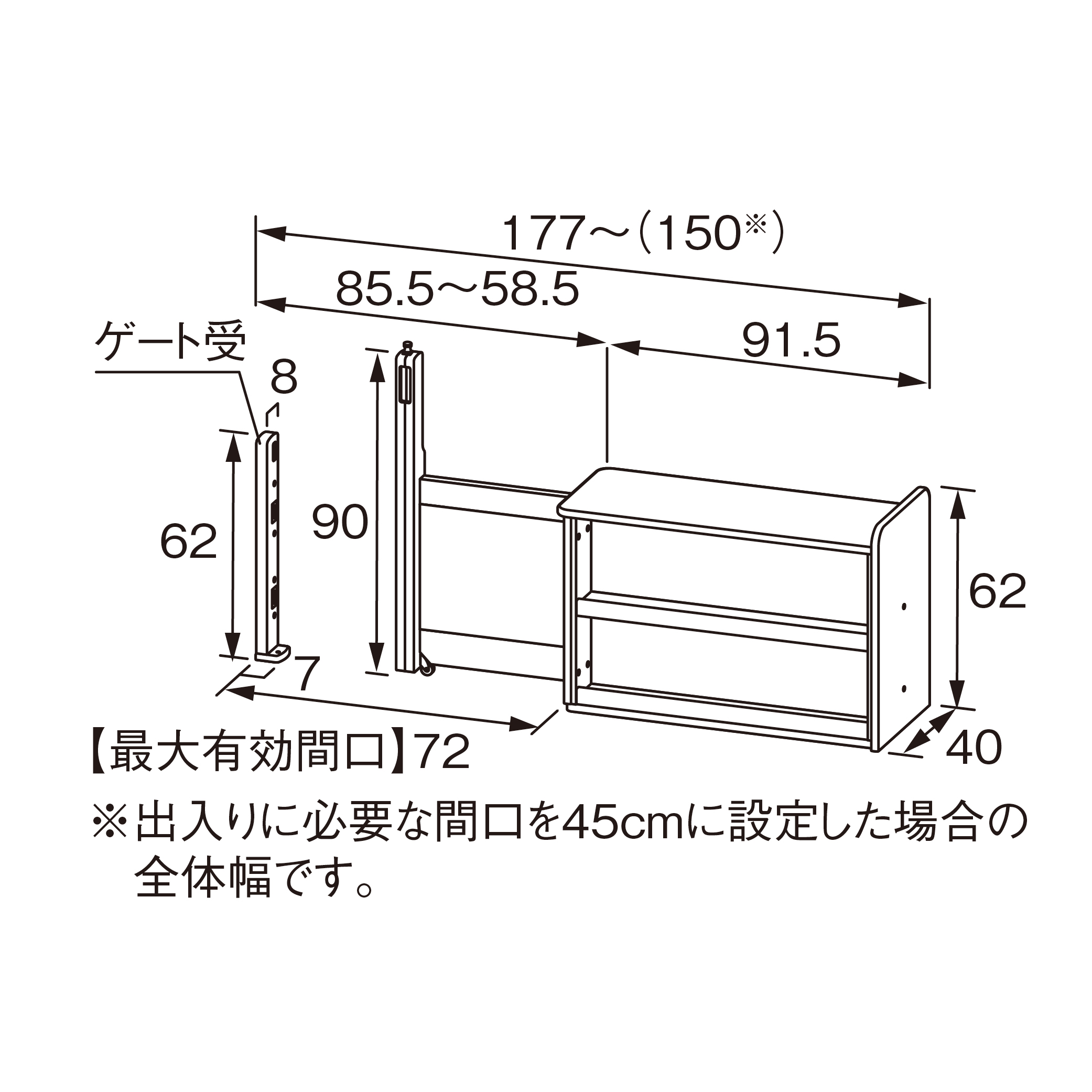 ■注意事項: ※必ず同シリーズのロッカーまたは、壁面に固定してください。 ※ゲート受は必ず収納棚や、ブックスタンドなどのロッカーに連結してください。