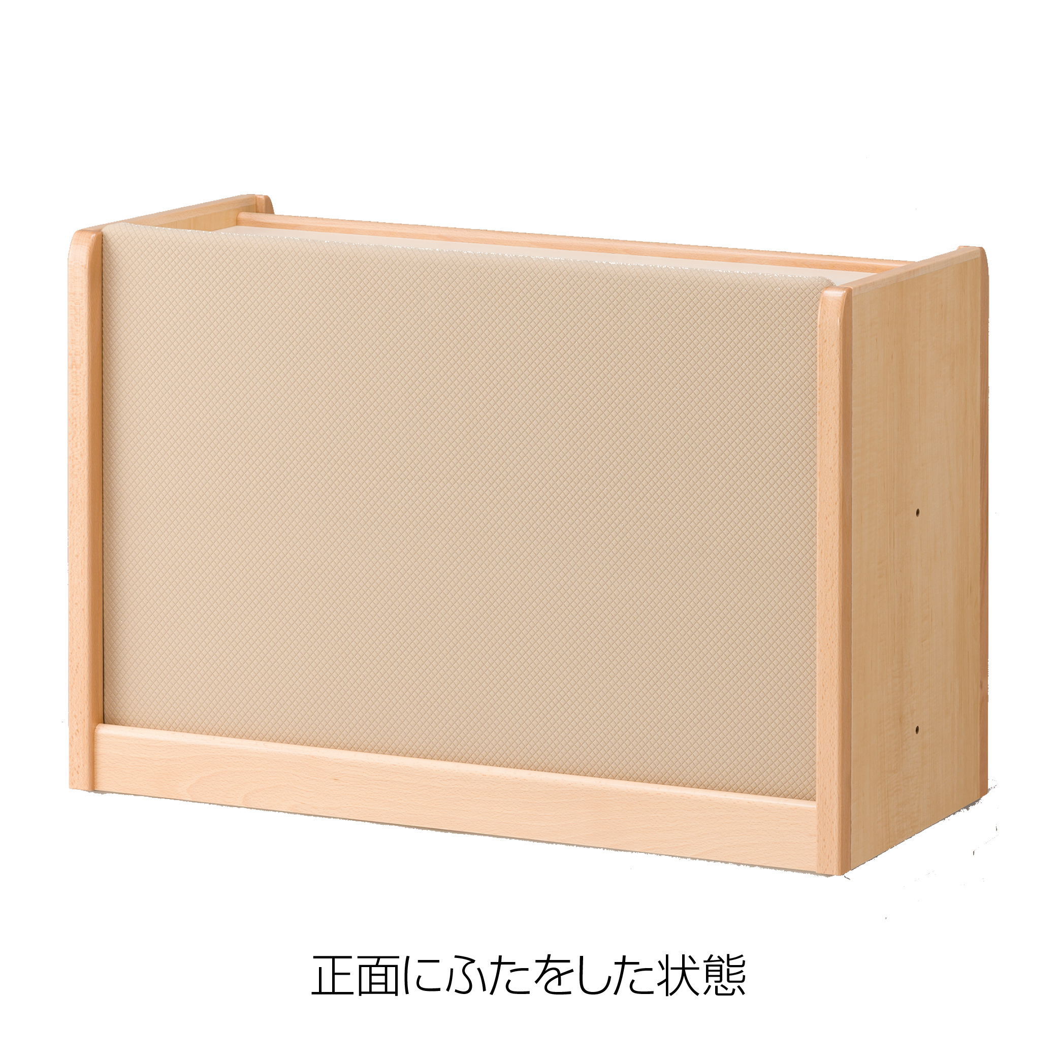 ふたをすることで、収納物の管理や乳幼児の足掛けを防止できる整理棚です。