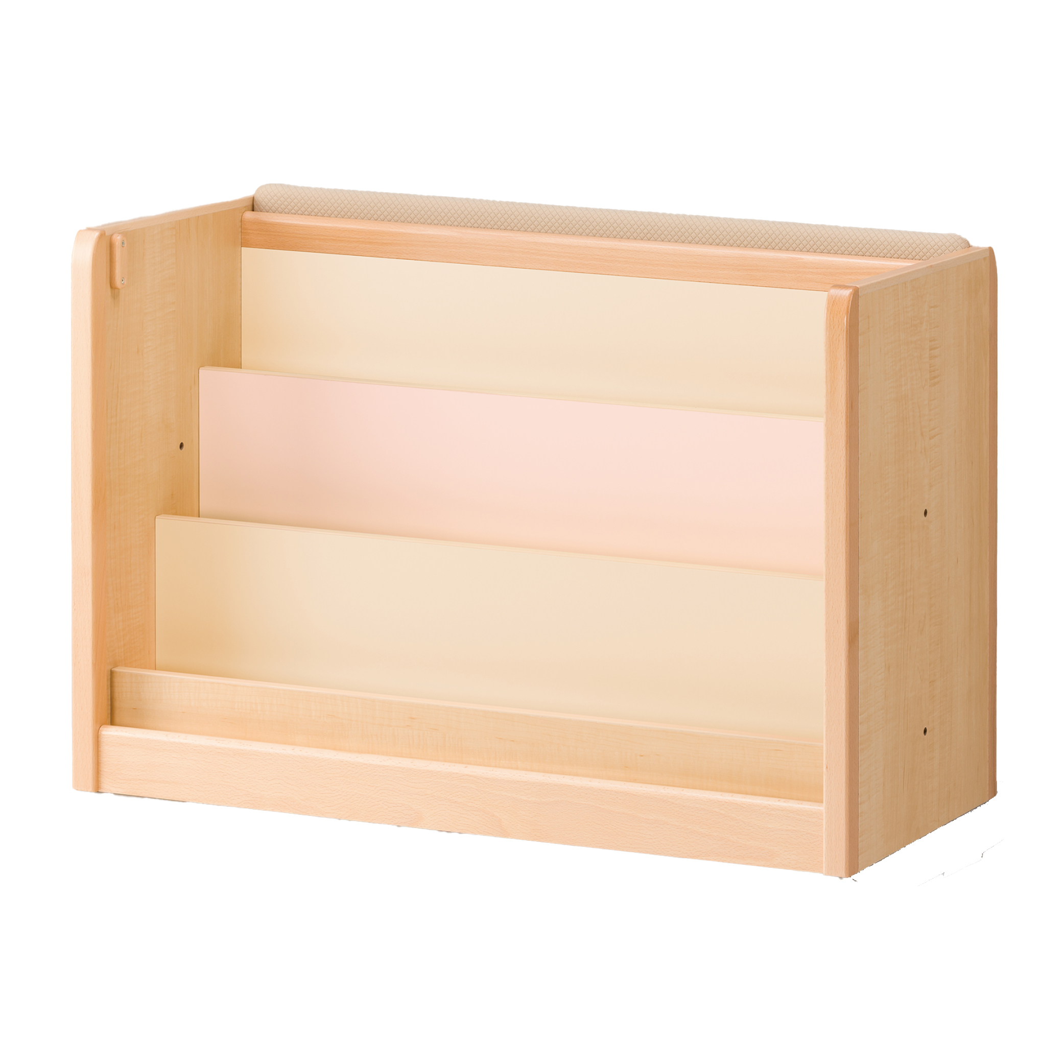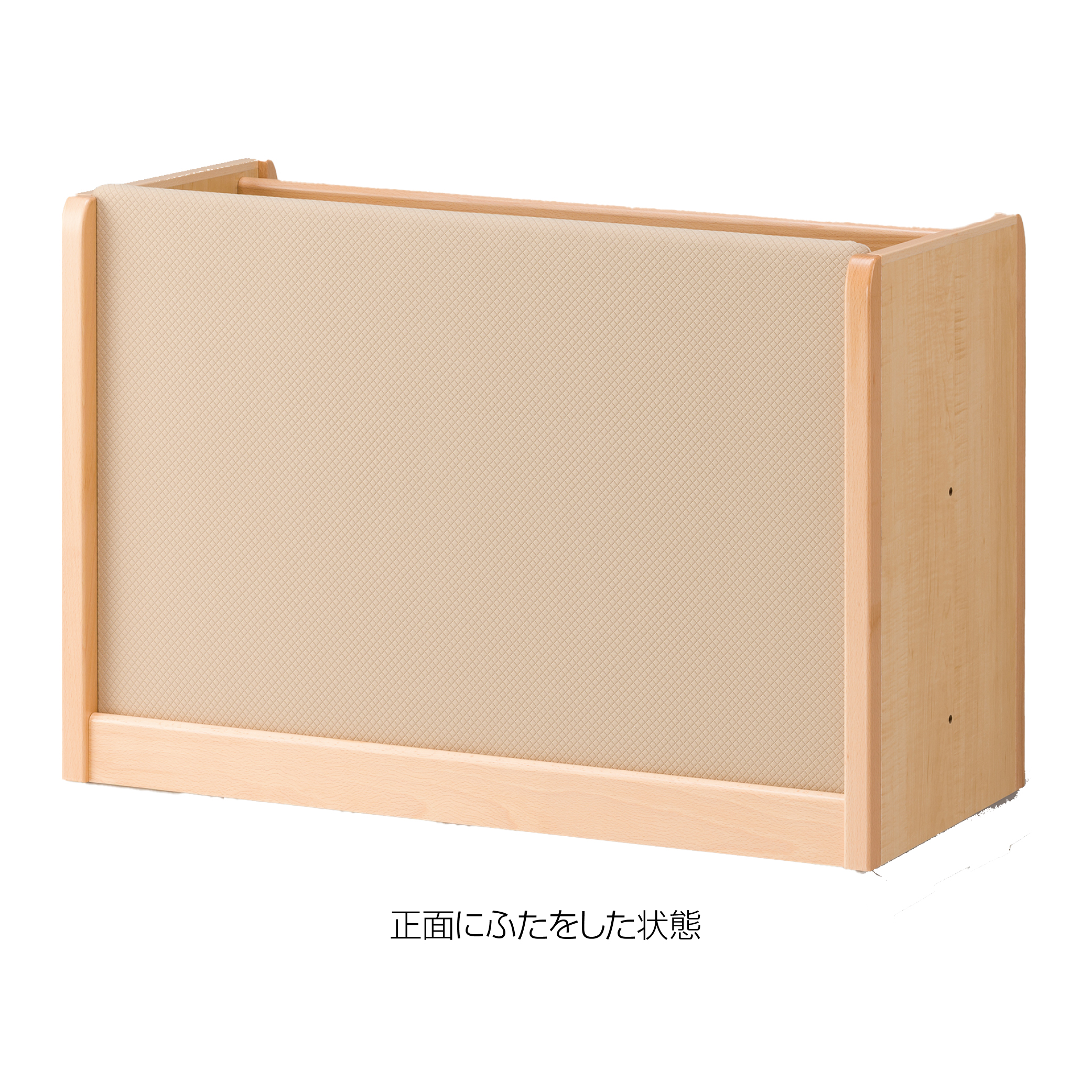 ふたをすることで、収納物の管理や乳幼児の足掛けを防止できる絵本立てです。