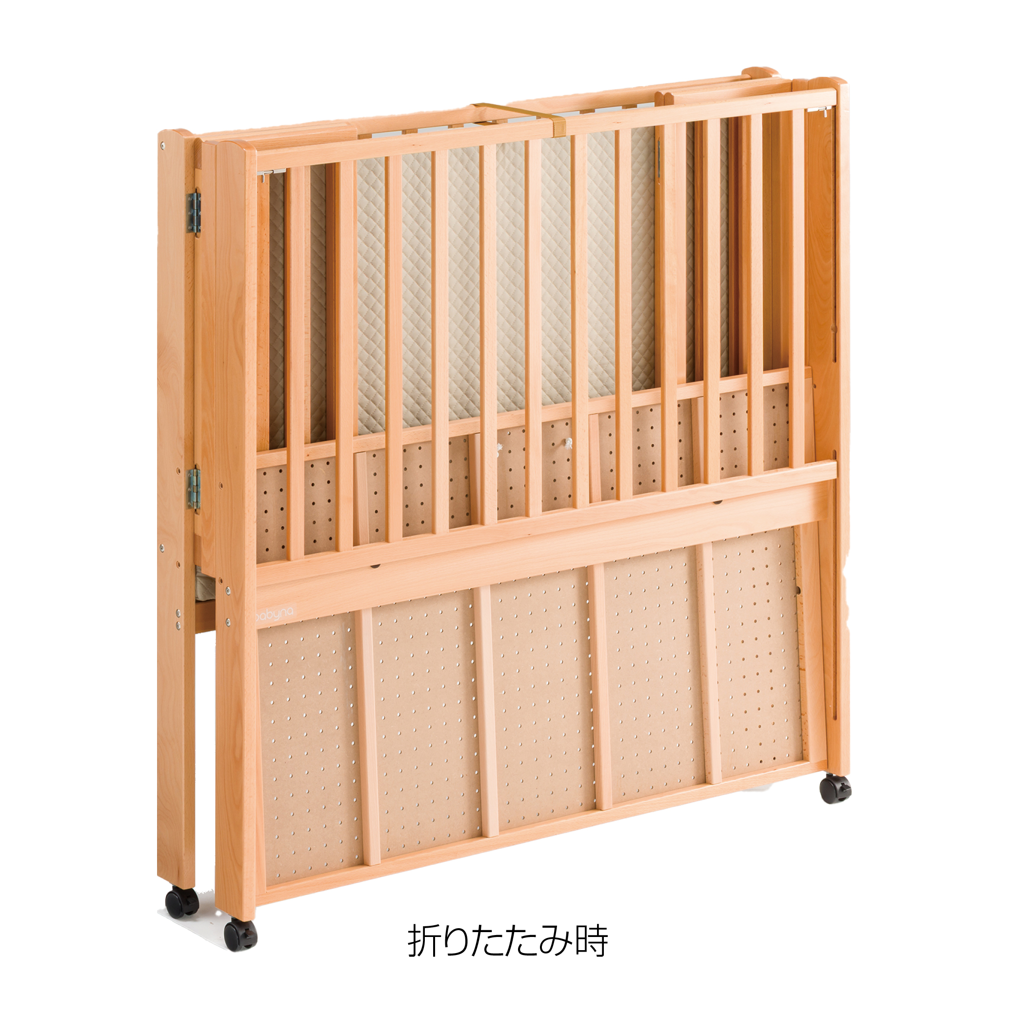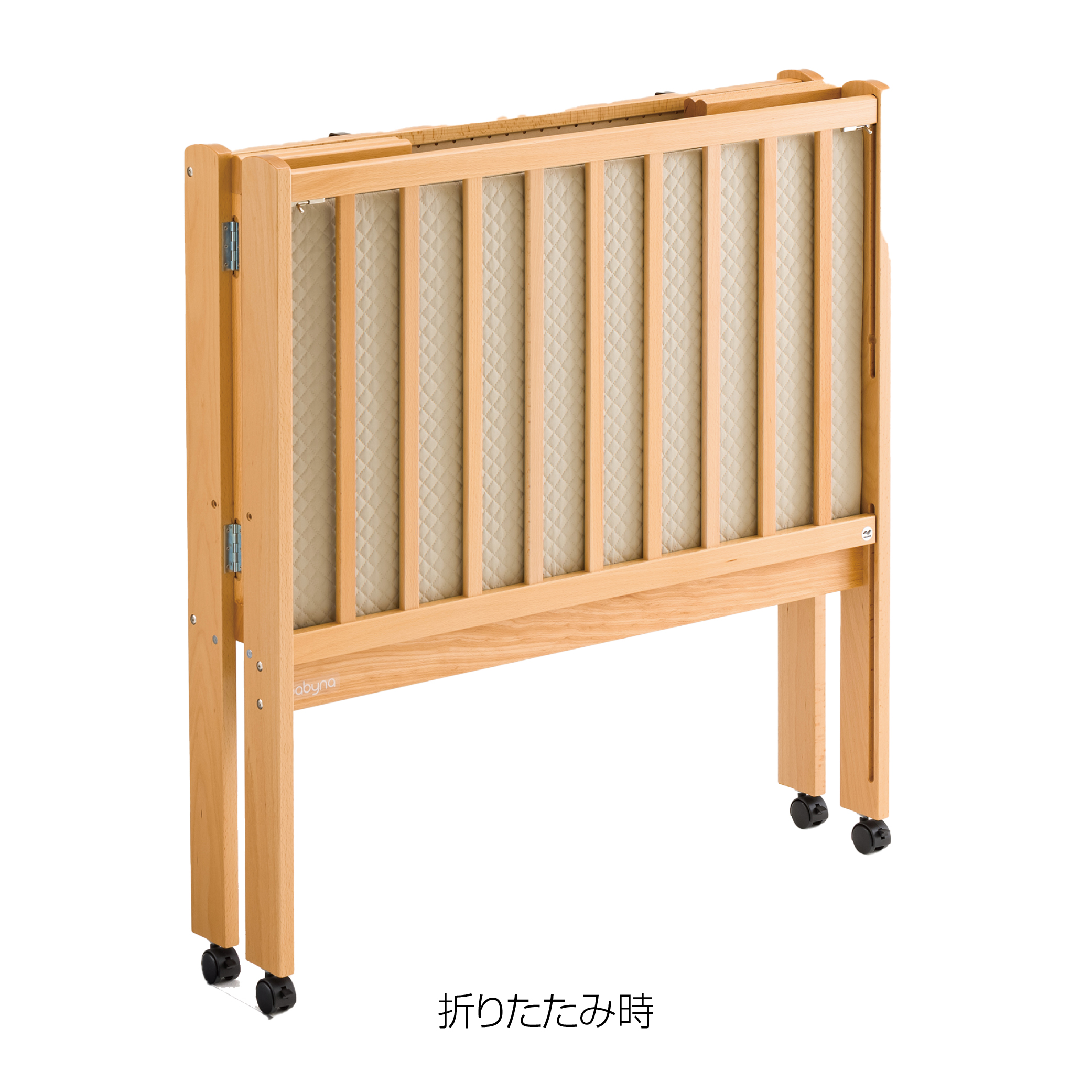 床板を入れたまま折りたたみでき、マットレスを収納できます。