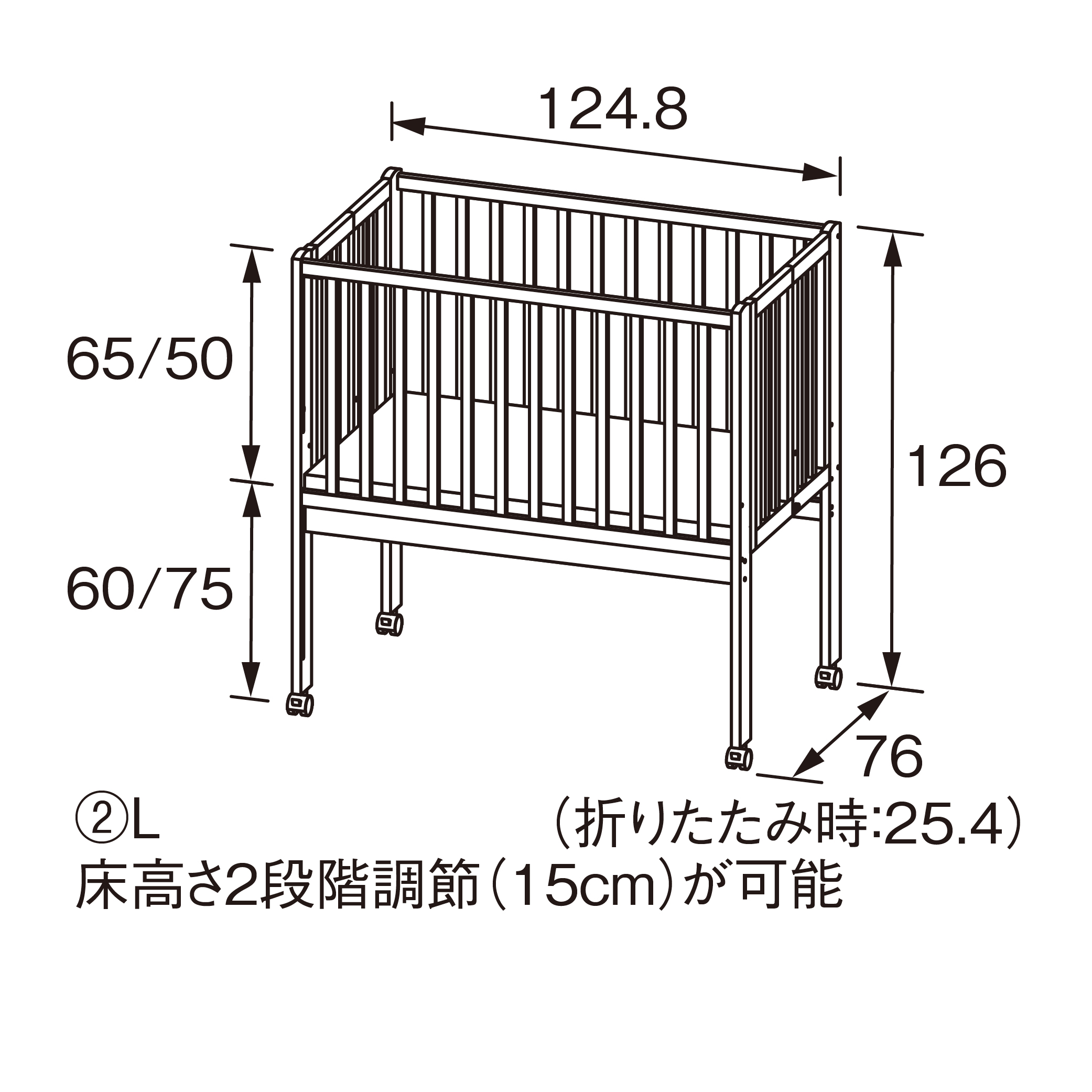 床高さ2段階調整が可能な折りたたみ式ベッドです。