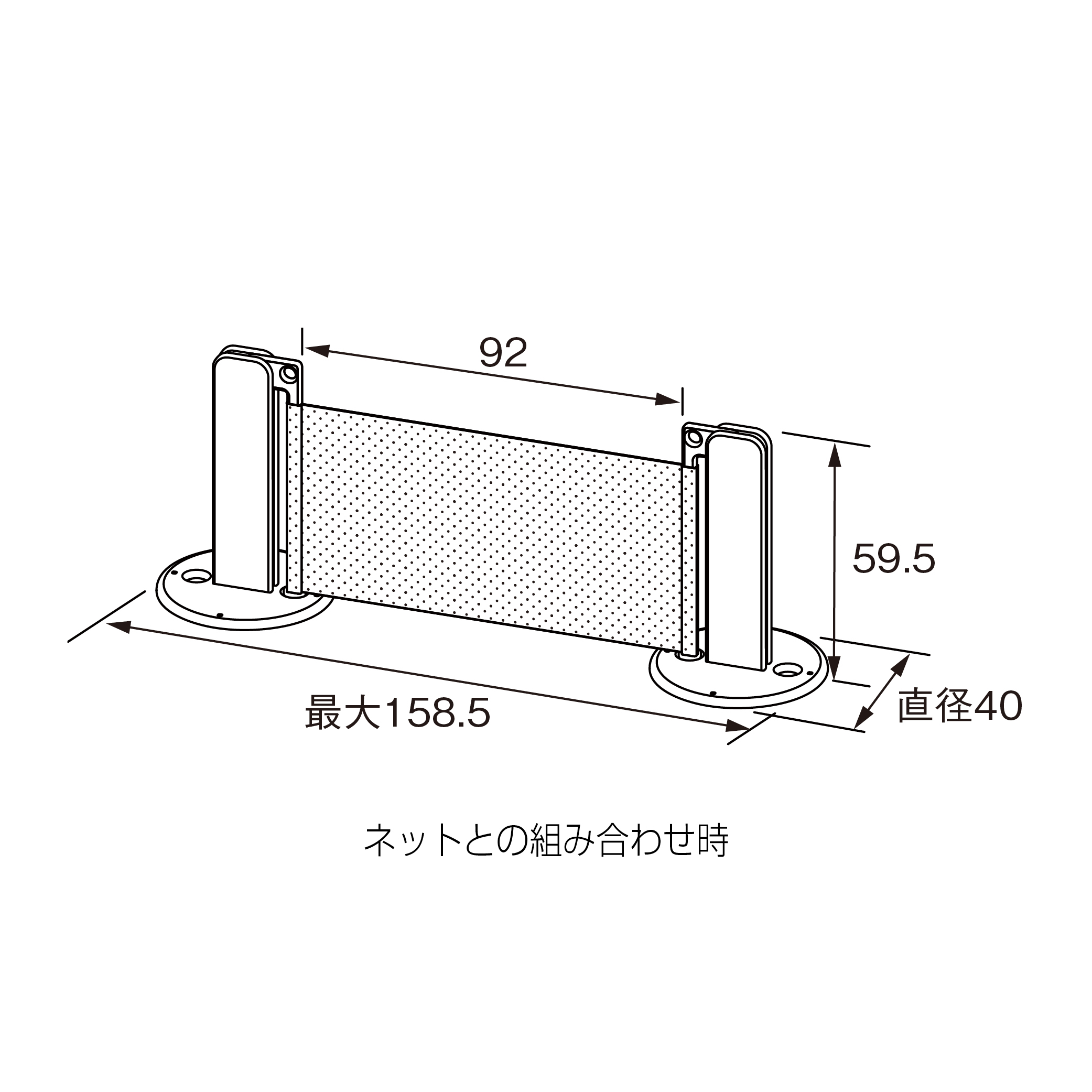 ネットは持ち手部分に巻き付けることで、パーテーションの幅を調整できます。