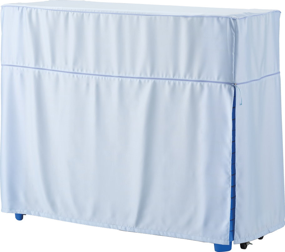 スタッキングベッドを収納する際にかけるカバーです。ファスナーで丈を2段階に調節できます。(15台用、20台用)防炎の生地を使用しています。