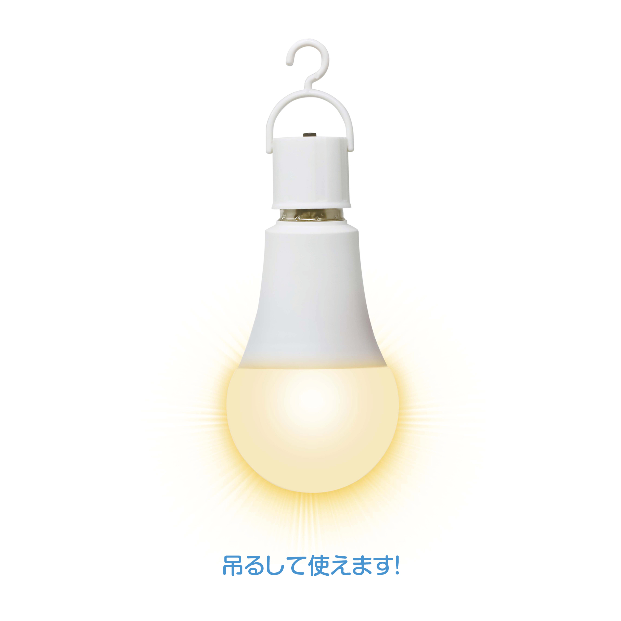 口金を持つだけで光り、フック付ソケット(スイッチ付)で吊るしても使用できるため、日常ち非日常の両方で活躍します。
