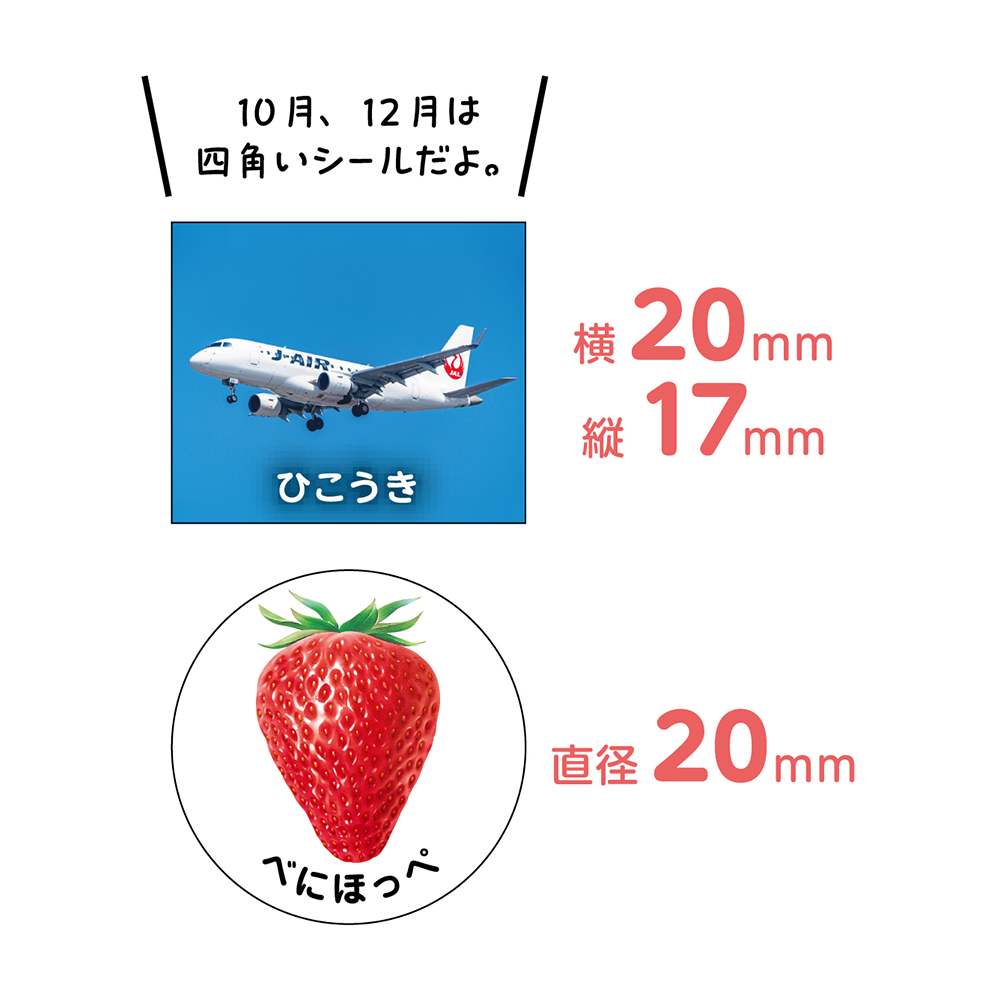 10月、12月は四角いシールだよ。