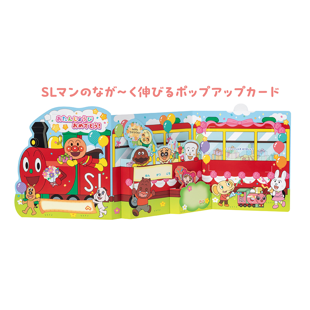 カードを伸ばすと、あかちゃんまんとメロンパンナちゃんが飛び出して、お祝いしてくれます!