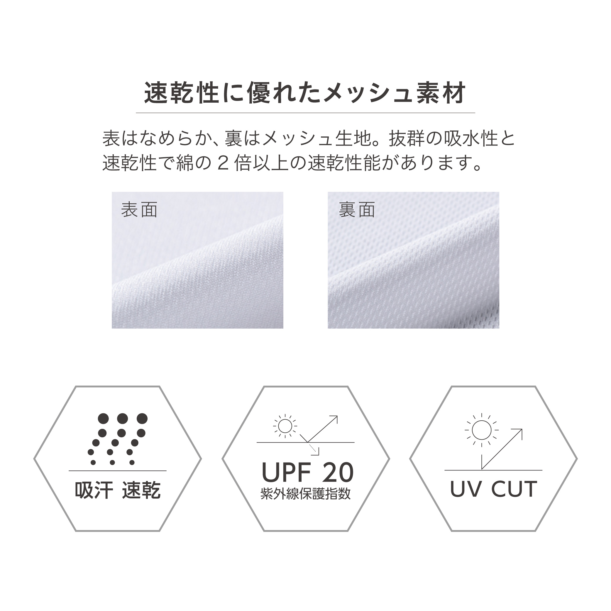 ■材質: ポリエステル100% UVカット 吸汗・速乾
