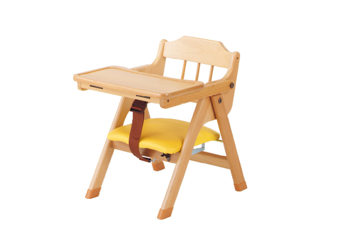 木製乳幼児用椅子レザー折りたたみ式 ナチュラル 黄