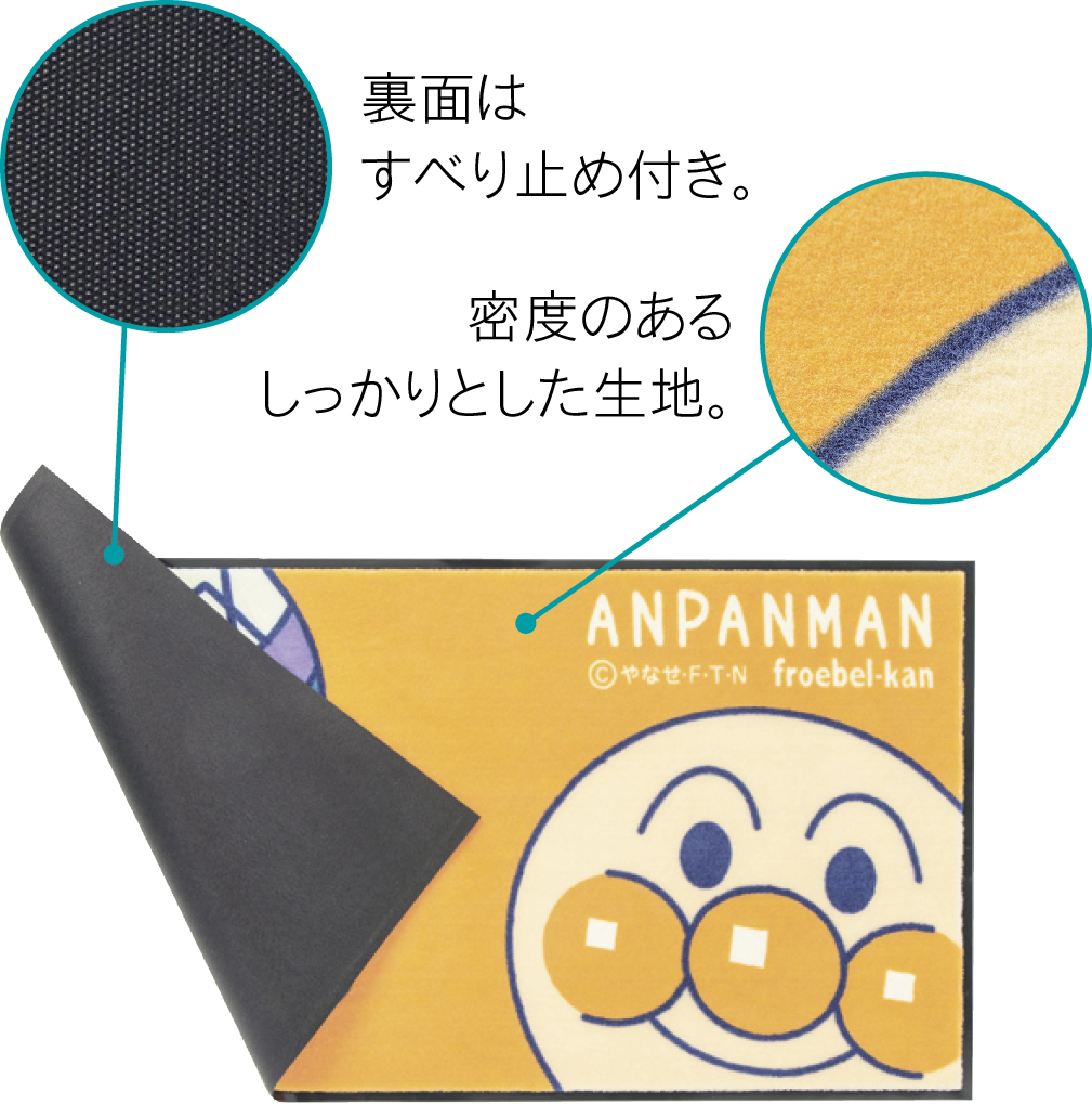 アンパンマンと一緒に思わず笑顔になっちゃう!やさしいシャーベットカラーのマットです。(公財)日本防炎協会認定品