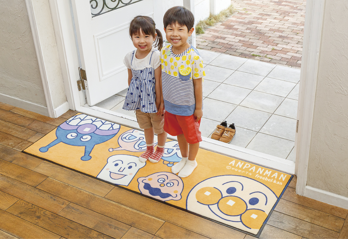 アンパンマンと一緒に思わず笑顔になっちゃう!やさしいシャーベットカラーのマットです。(公財)日本防炎協会認定品