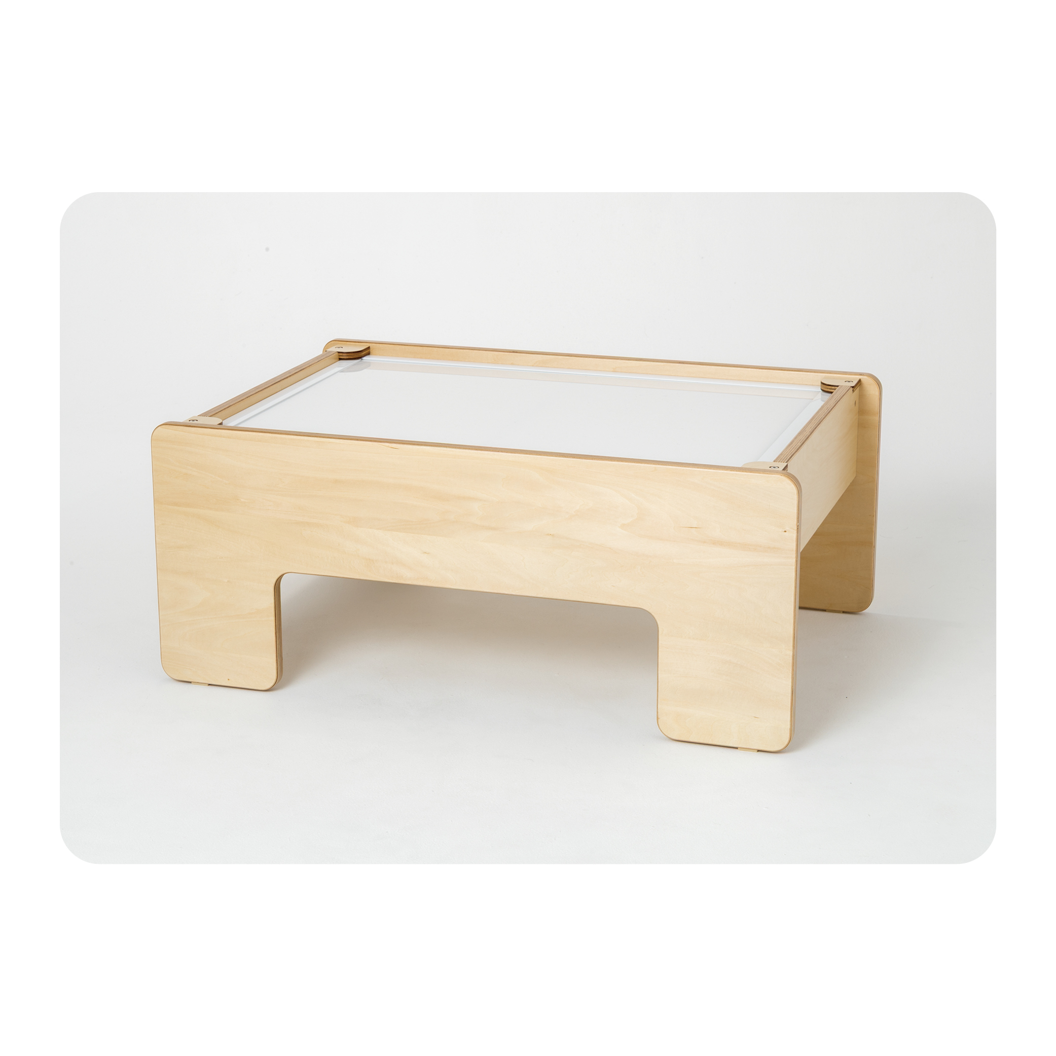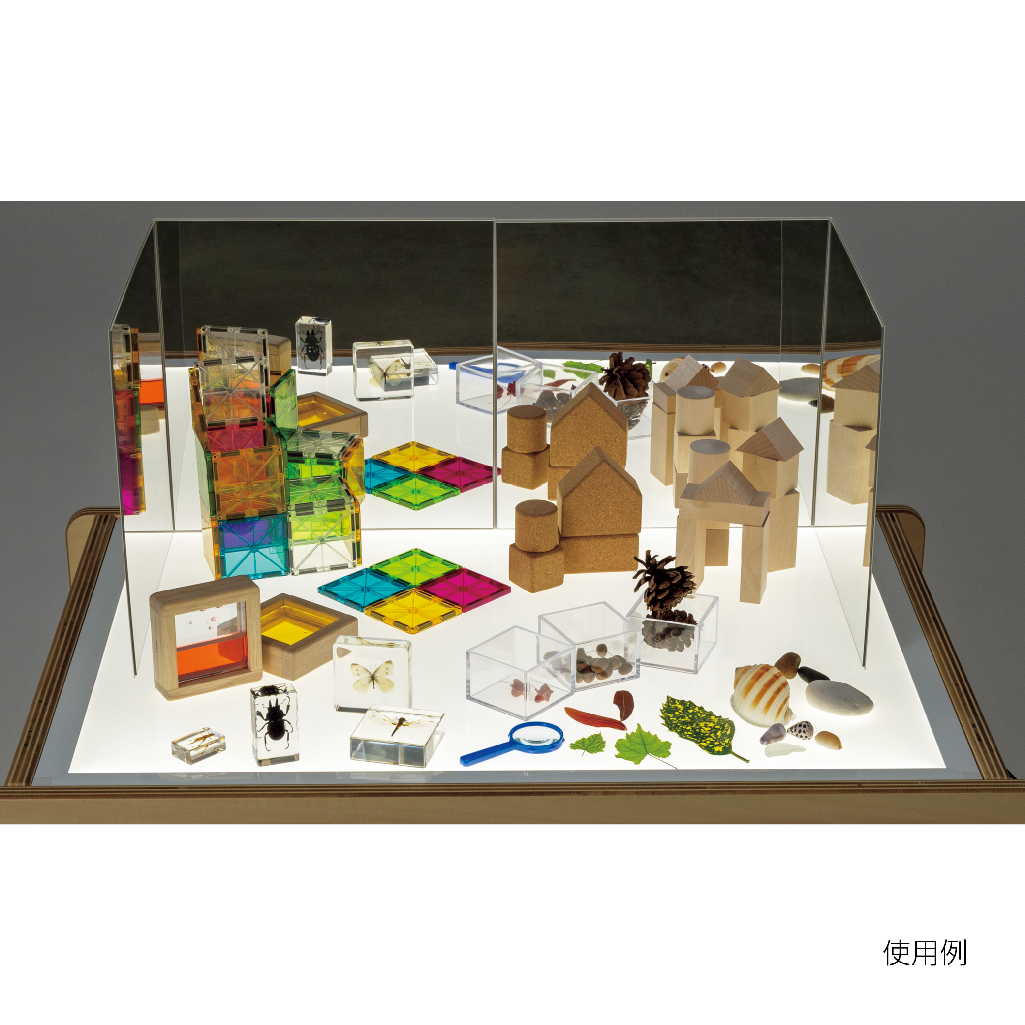 光を発するテーブルを介して、さまざまな素材を観察し、ものの見え方を楽しみ、その美しさを感じることで、子どもたちの興味・関心を引き出します。