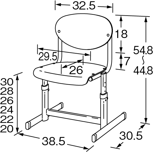 6段階に脚の長さを調整できます。Aタイプはフラットな座板です。Bタイプは背板と座板が体にフィットしやすい曲面成形です。3脚までスタッキングができます。
