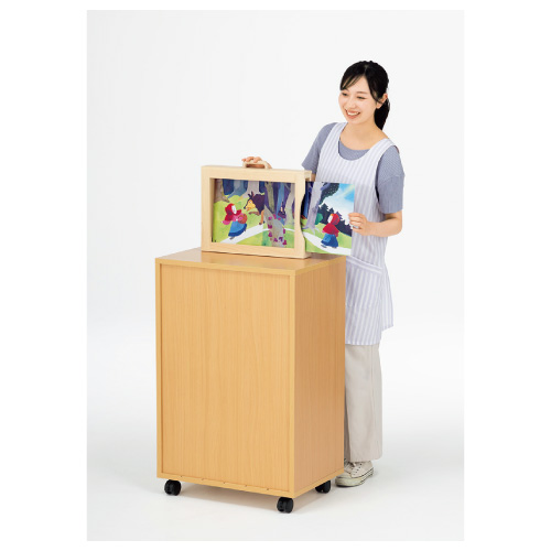紙芝居キャビネット・移動式 木調