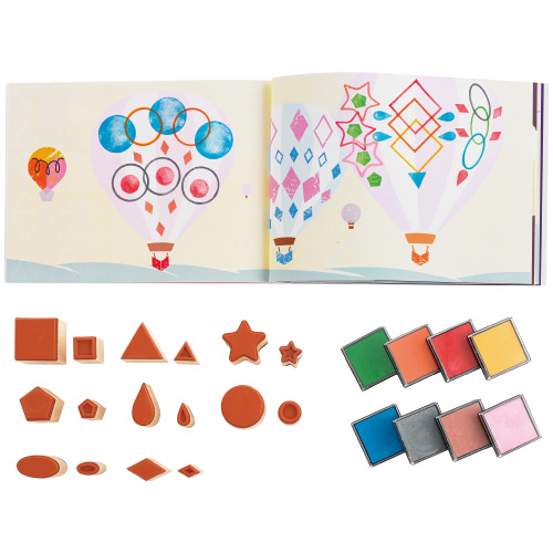 - ■セット内容: スタンプ16(スタンプ形状32種類) インクパッド8色 アートブック1