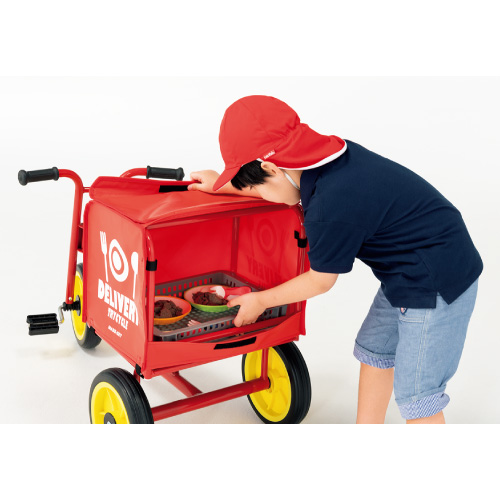 - 宅配バイク型のユニークな三輪車です。