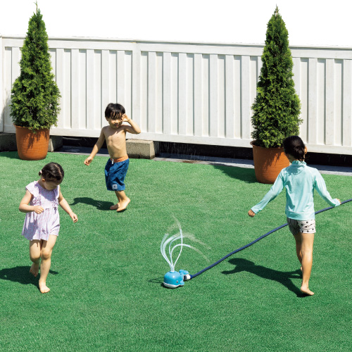 園庭での水遊びに最適な、面白い動きをするスプリンクラーです。