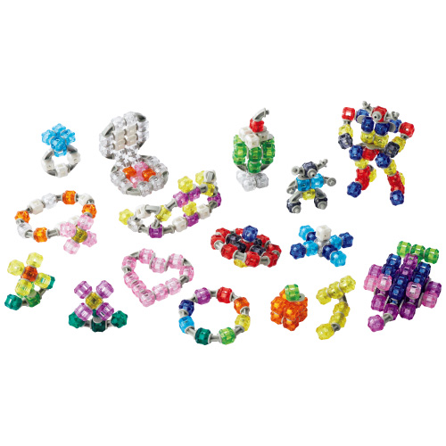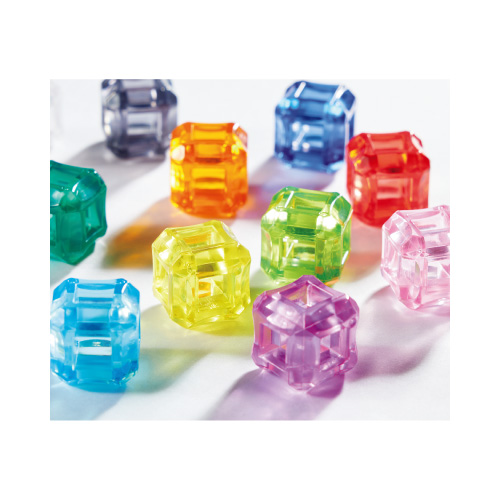 キューブは12種類の誕生石とリンクした色になっています。透明さを活かして、きれいなアクセサリーなどもつくれます。