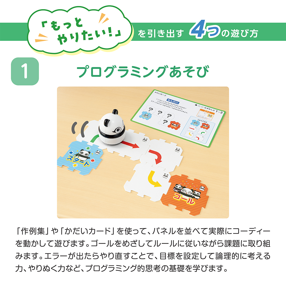 「幼児プログラミングロボット」と「知育玩具」がひとつになった新感覚の教材です。
