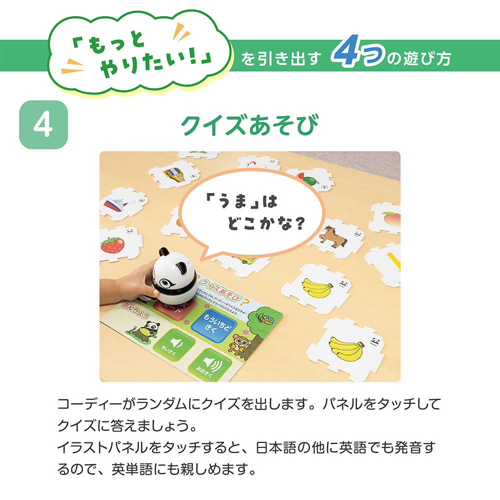 ■セット内容: コーディー本体2 かだいカード15(両面) メロディ・クイズあそび・ピアノあそびカード1(両面) パネル86 化粧箱1