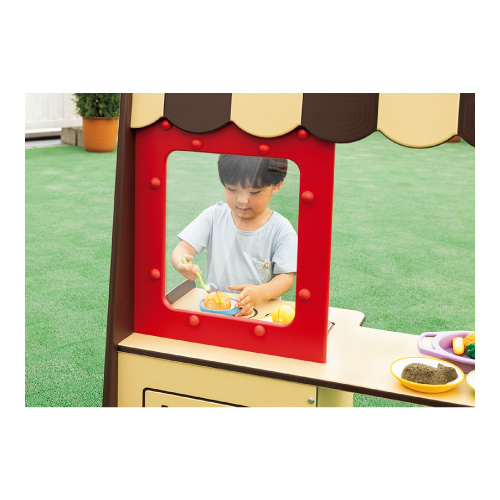 耐久性・対候性に優れた高密度ポリエチレン製。屋外でのごっこ遊びにぴったりです。