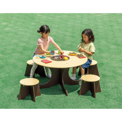 スツールは砂場に持ち運び、低めの砂場用テーブルにすることもできます。