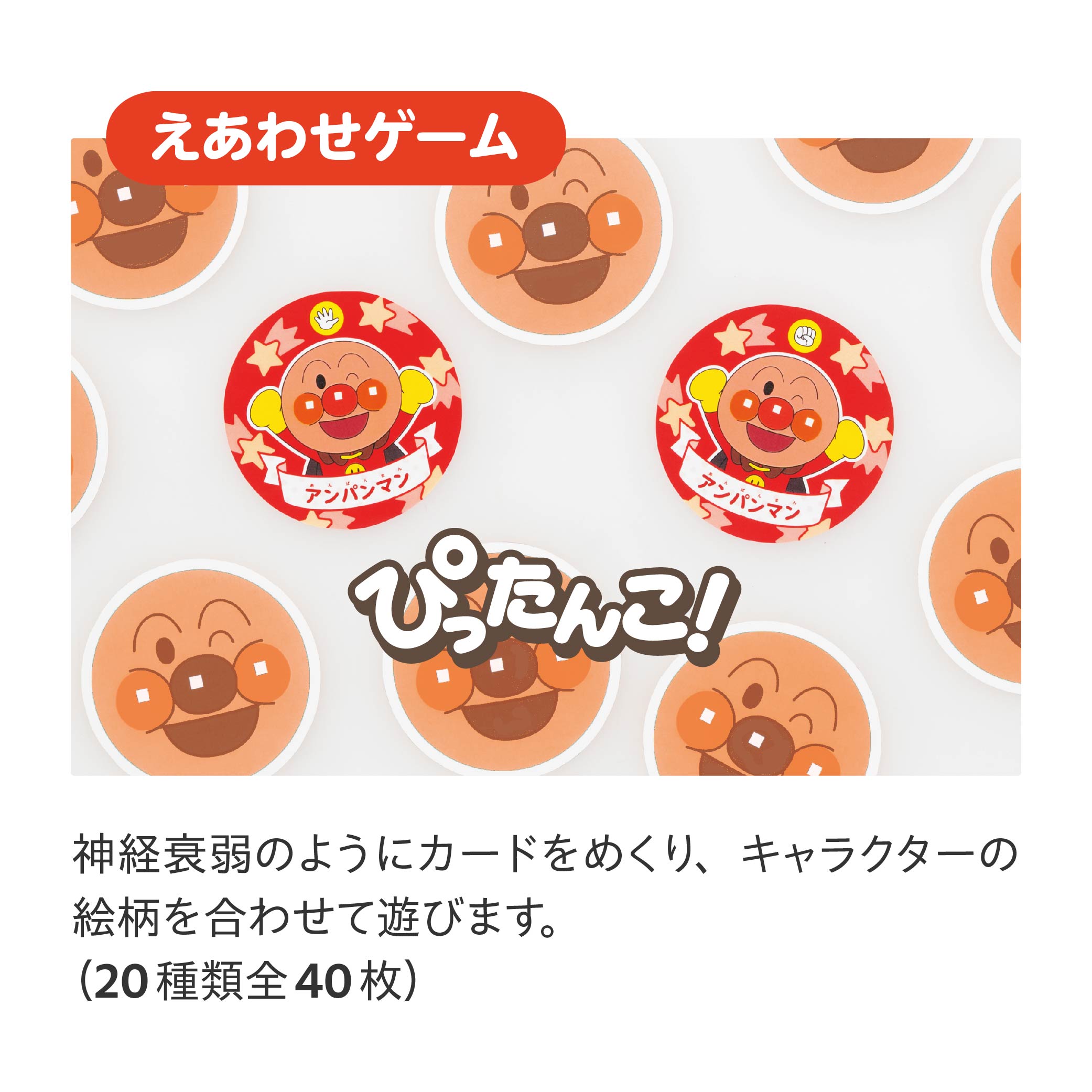 - 大人気!アンパンマンとなかまたちが登場する、楽しいえあわせゲームです。
